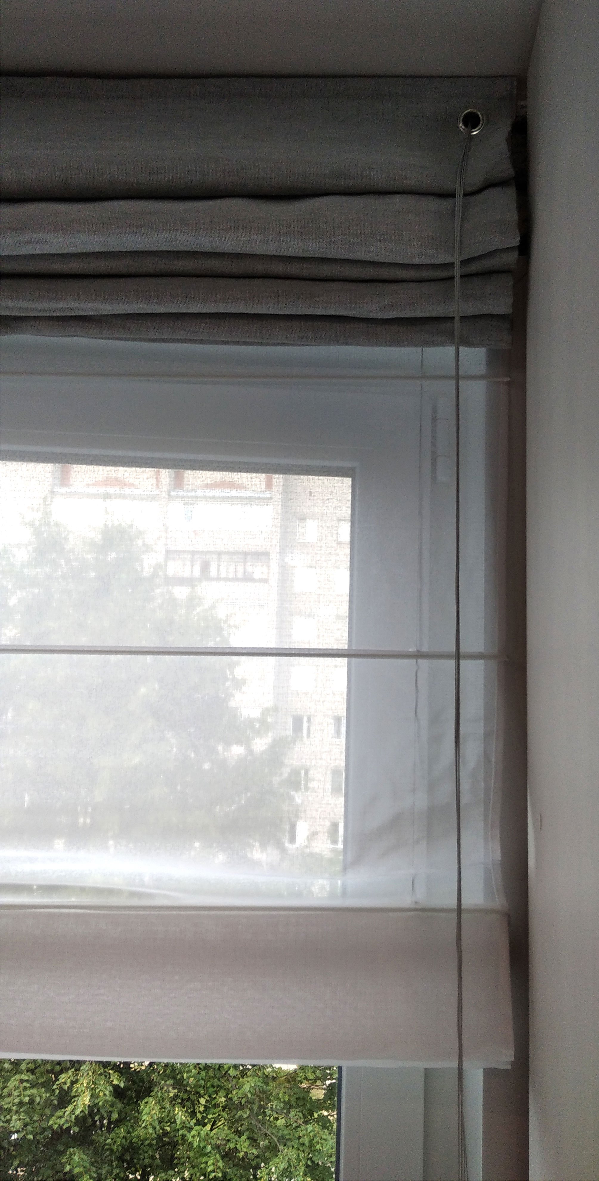 Видно только ткань шторы, крепление скрыто под ней.